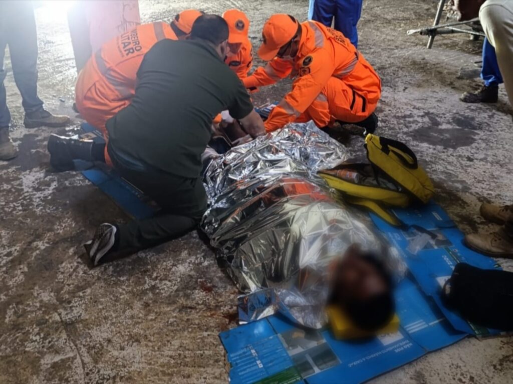 Devido ao espaço confinado e à dificuldade de acesso, o Corpo de Bombeiros precisou montar um sistema multiplicador de força para resgatar a vítima. O homem apresentava fortes dores nas pernas e suspeita de fraturas nos membros inferiores.