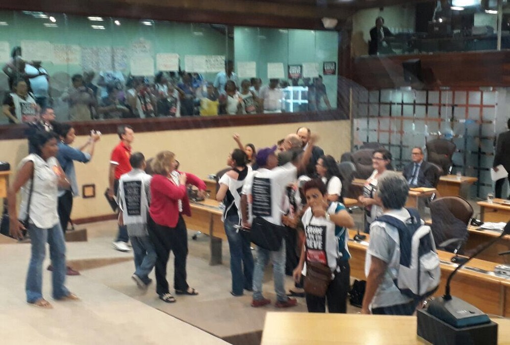 Assembleia do RN aprova lei que congela orçamento de 2018 e servidores invadem plenário