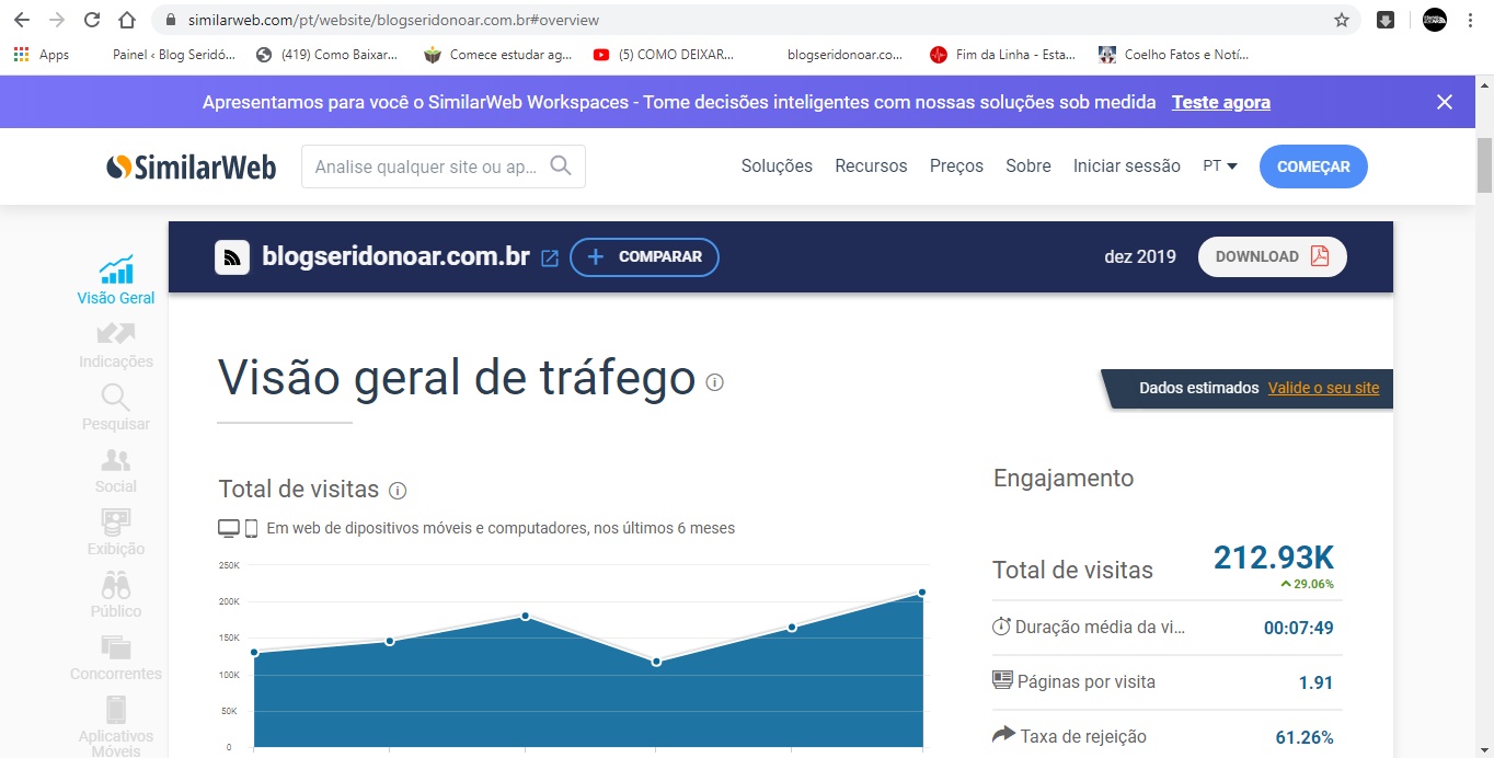 Com o maior banco de dados de comportamentos digitais, o SimilarWeb é uma referência no setor de inteligência de mercado. Ao acessar a página, o internauta pode comparar um website com qualquer concorrente no mundo para ver seu verdadeiro desempenho em termos de visitas, tempo gasto em seu site, taxa de rejeição e visualizações de página por visita.