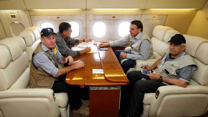 No sobrevôo de hoje estarão os ministros da Defesa, Fernando Azevedo e Silva; do Gabinete de Segurança Institucional, general Augusto Heleno; e de Secretaria de Governo, Alberto dos Santos Cruz, além do porta-voz, Otávio do Rêgo Barros.