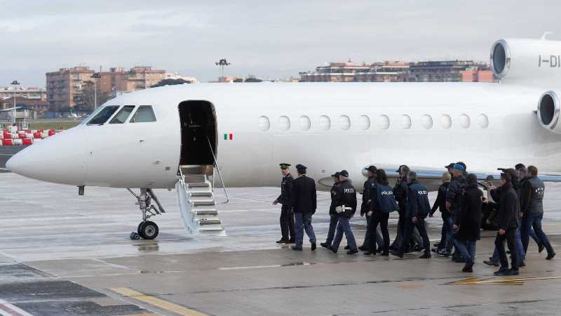 O avião Falcon 900 do governo italiano aterrissou por volta das 11h30 (8h30 de Brasília) desta segunda-feira (14), no aeroporto de Ciampino, em Roma, com Cesare Battisti. Assim que ele desembarcou, foi preso pelos agentes do GOM, o grupo operativo móvel da polícia penitenciária da Itália, que o levarão para a prisão de Rebibbia, na capital italiana.