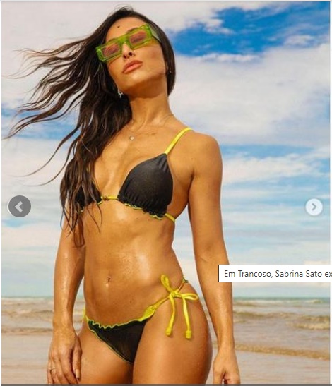Curtindo Trancoso, na Bahia, a apresentadora Sabrina Sato elevou a temperatura em suas redes sociais neste sábado, 14. Em seu perfil do Instagram, a musa compartilhou alguns cliques na praia exibindo seu corpão definido.