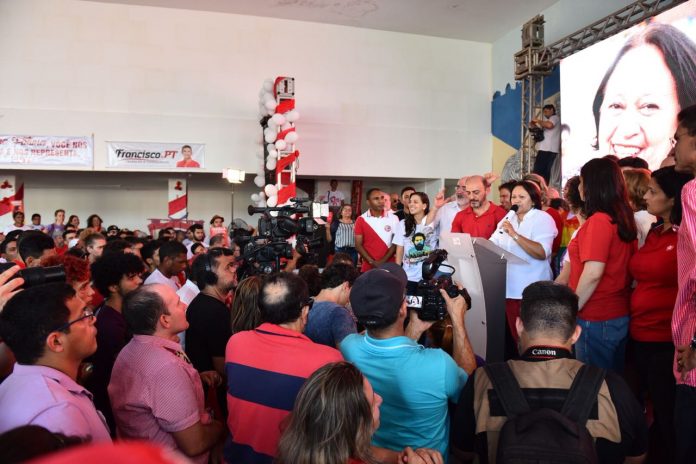 Em sua fala, Fátima Bezerra também falou da injustiça que estão cometendo contra o ex-presidente Lula. Segundo ela, “as nossas candidaturas representam aqui no Rio Grande do Norte a luta contra a injustiça. Fica aqui a nossa revolta contra a prisão do nosso presidente Lula. O que está acontecendo em nosso país é que as forças conservadoras estão rasgando a Constituição em detrimento da democracia. Se faz urgente libertar o presidente Lula!”