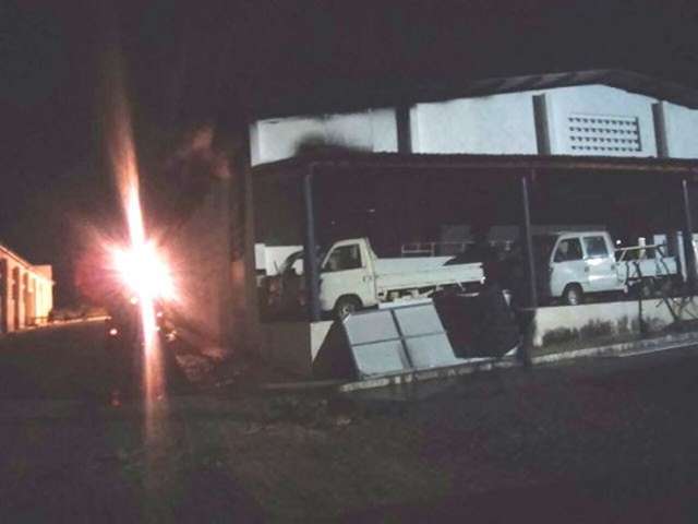 Veículos estacionados por trás do depósito por pouco não foram atingidos.