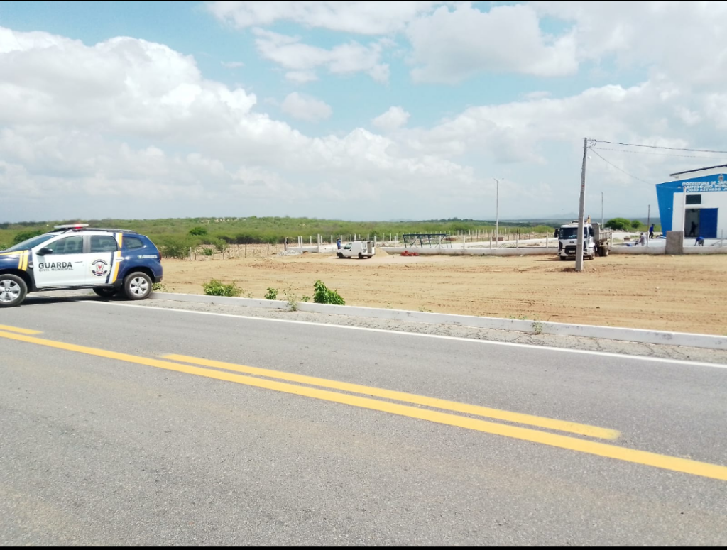 Os agentes da Guarda Civil Municipal estão em serviço constante para monitorar e direcionar o tráfego na BR-427, proporcionando um ambiente seguro para os servidores municipais que trabalham na preparação do local para a inauguração do abatedouro.