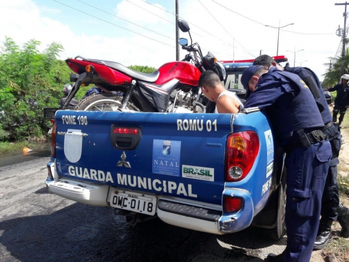 Agentes da Guarda Municipal do Natal apreenderam três pessoas durante o feriado da Semana Santa. Na manhã da sexta-feira 14 os guardas conseguiram recuperar uma motocicleta com queixa de roubo e prender o suspeito de receptação identificado como Nazareno Soares da Cruz Júnior, 25 anos. A moto de placa QGK 1799 foi encontrada dentro da Comunidade do Mosquito, situada na zona Norte da capital.
