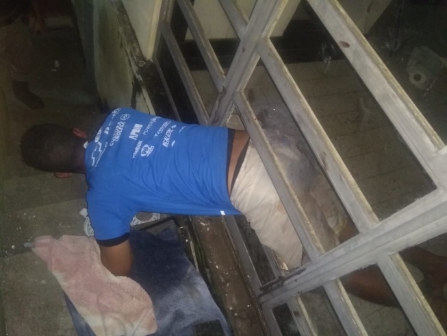 Segundo a Polícia Militar, o suspeito foi encontrado preso nas armações metálicas de uma porta de vidro, após ter comido biscoitos e ingerido bebida alcólica na residência e, por isso, tinha sinais de embriaguez quando foi flagrado. Os vizinhos acionaram a polícia quando perceberam a situação. Foi necessário também chamar o Corpo de Bombeiros para desentalar o homem.
