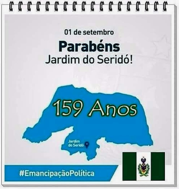 A cidade de Jardim do Seridó, sertão do Rio Grande do Norte, comemora nesta sexta-feira, dia 1º de setembro, seus 159 Anos de Emancipação Política do Município. Nesta data é celebrado um marco de luta e de vitórias em busca de reconhecimento enquanto uma cidade autônoma no cenário estadual. A cada ano, a data se torna mais cheia de descrições, anseios e expectativas de dias melhores.