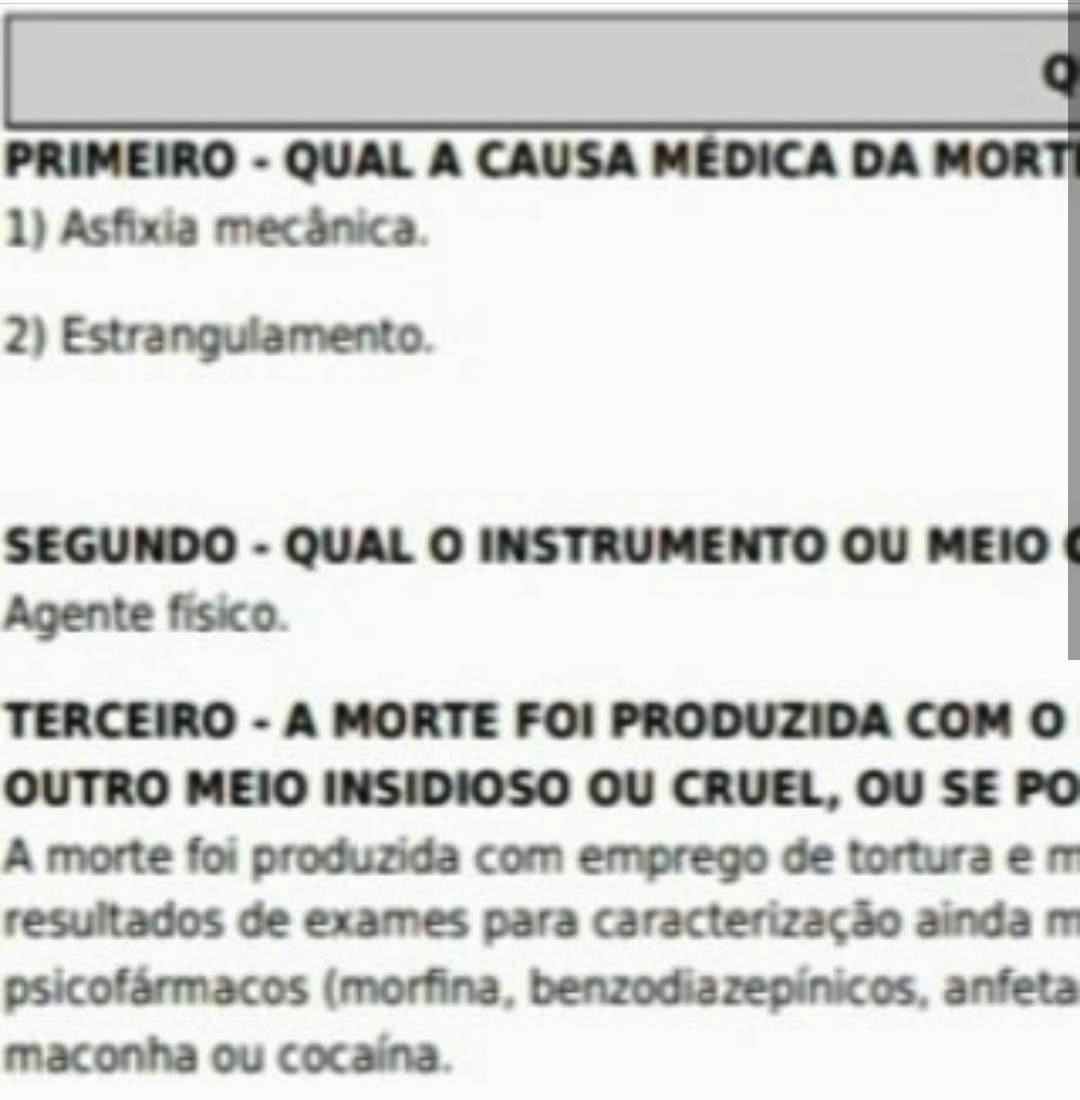 De acordo com os dados apresentados pelas emissoras de rádios e TV, a jovem foi assassinada por Asfixia Mecânica e Estrangulamento, e o meio foi agente externo, torturada cruelmente. A notícia foi dada em extra-ordinário.