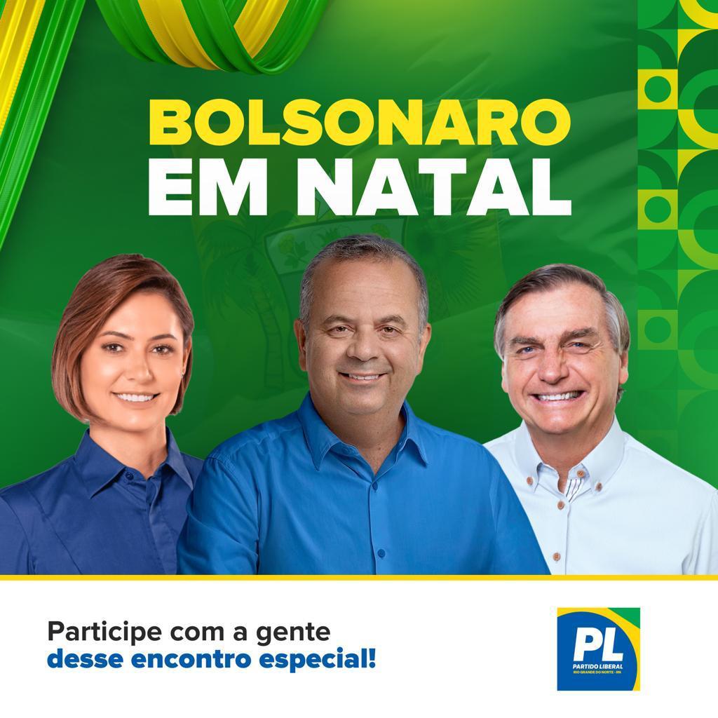 O Presidente do PL RN, senador Rogério Marinho, convida para o Encontro do PL no Rio Grande do Norte, nos próximos dias 30/11 (quinta), 01/12(sexta) e 02/12 (sábado), com a participação da presidente nacional do PL Mulher, Michele Bolsonaro, e do ex-presidente do Brasil, Jair Messias Bolsonaro.