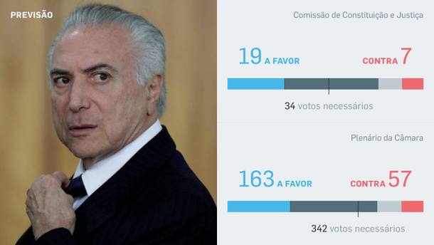 Na Comissão de Constituição e Justiça (CCJ) da Casa – o parecer do relator Sergio Zveiter (PMDB-RJ) deve ser divulgado na próxima semana – o placar mostra que, dos 66 parlamentares do colegiado, 19 são favoráveis à aceitação da denúncia, 7 são contrários, 32 não responderam e 8 se declaram indecisos.