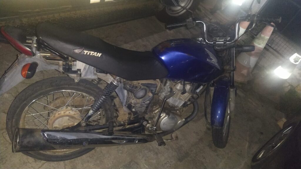 Na tarde de ontem (24), por volta das 17h, uma guarnição da Rádio Patrulha do 6º BPM recuperou uma motocicleta Honda Titan 150 de cor azul.