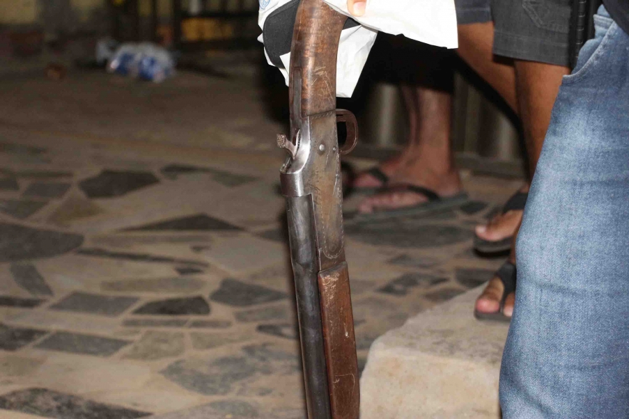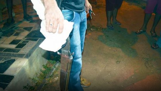 Para entrar no local, o bandido cortou a cerca elétrica e na fuga, abandonou a arma utilizada no crime e fugiu pelo muro dos fundos do prédio.