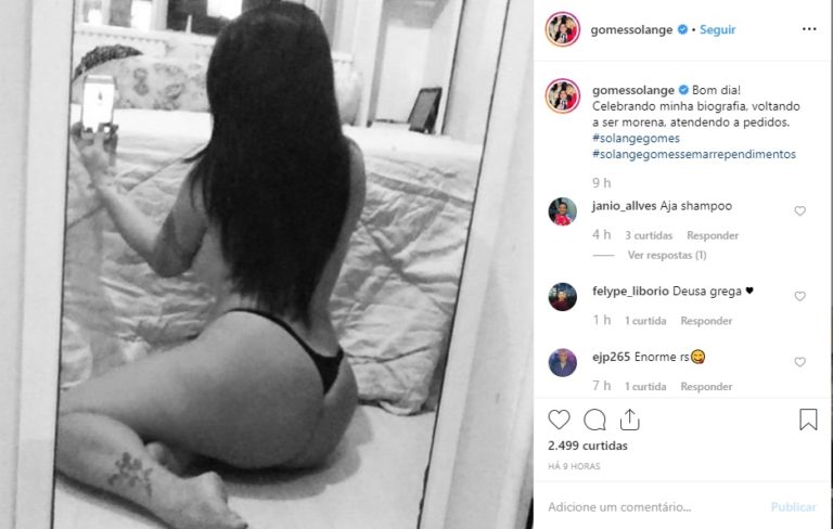 A musa dos anos 90, Solange Gomes, elevou a temperatura na manhã deste sábado (10), em um clique pra lá de ousado. De topless e calcinha fio dental, ela colocou para jogo o bumbum gigante e foi muito elogiada.