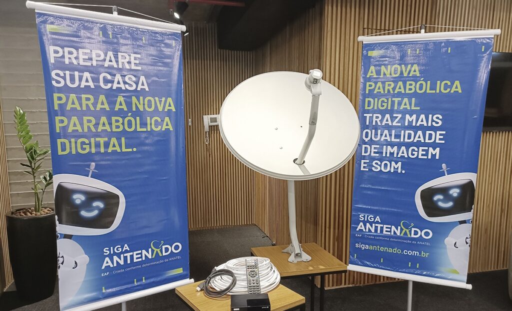 Quem está fazendo a substituição dos equipamentos é a Siga Antenado, entidade sem fins lucrativos criada por determinação da Anatel para apoiar a população de menor renda durante a migração do sinal de TV utilizado pelas parabólicas tradicionais (Banda C) para o sinal das parabólicas digitais (Banda Ku). Para verificar se tem direito ao kit gratuito e se o agendamento já está liberado para a sua cidade, a população deve acessar o site sigaantenado.com.br ou ligar gratuitamente para 0800 729 2404 com o CPF ou NIS em mãos. É só marcar a melhor data e aguardar a visita do técnico para a instalação da nova parabólica digital.